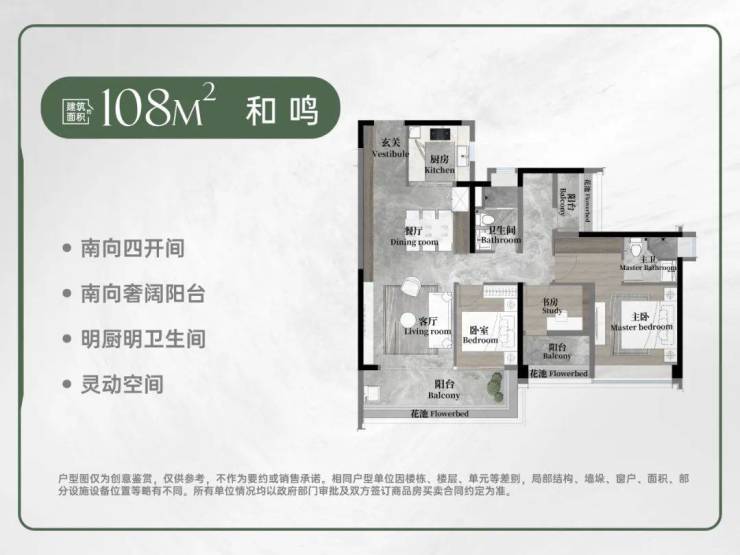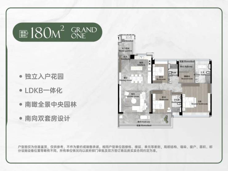 :108㎡-180㎡多种户型,可满足不同家庭的需求,空间灵活性高。