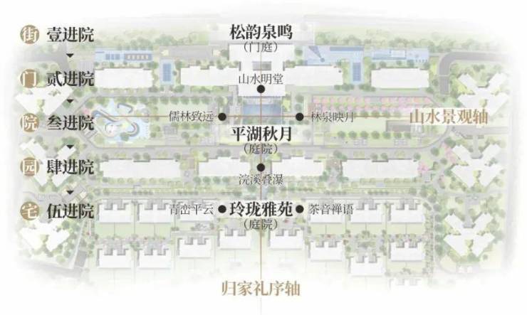 ▫汲取岭南四大名园精华,布局两轴三庭,五进六园,尽显归家礼序。
