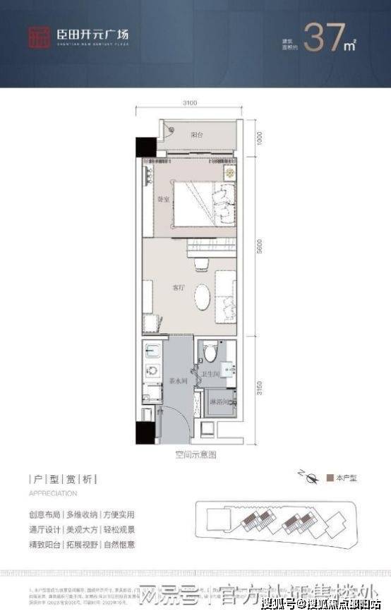 臣田开元广场,前海湾芯 36万㎡开元超体,真公寓·带阳台·通燃气·民水民电通燃气,建面约37-88㎡瑧品公寓,40㎡,88㎡东南,37㎡,84㎡东北