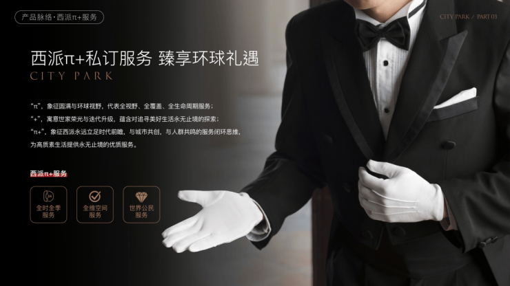 “π+”象征西派永远立足时代前瞻,与城市共创,与人群共鸣的服务闭环思维为高质素生活提供永无止境的优质服务。