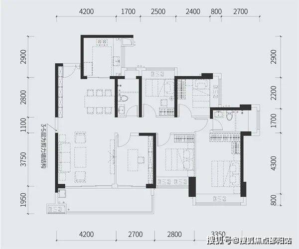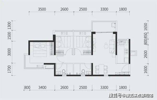 建面约97㎡三房两厅两卫双开间阳台设计 瞰四季阳光美景U形厨房格局 烹饪动线流畅高效