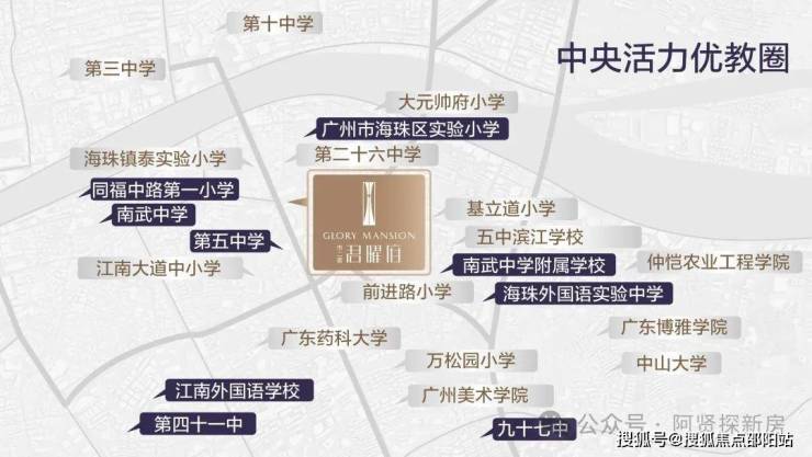 公办省一级海珠区实验小学为邻,对口五中、六中、南武等名校(2024年教育招生公示),周边30余所优质学府林立,划定“中央活力优教圈”,开启海珠菁英教育新时代。(具体招生政策以当年政府教育局公布为准。)