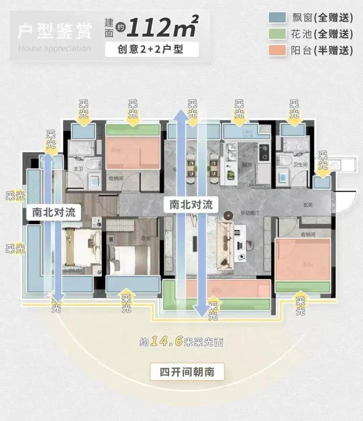 112 户型:性价比极高,是区府舒适大四房。约 5.2m 方厅设计,待客会友从容自在。罕见三阳台赠送,拓展生活尺度。瞰江视野升级,270° 观景飘窗,彰显不凡。