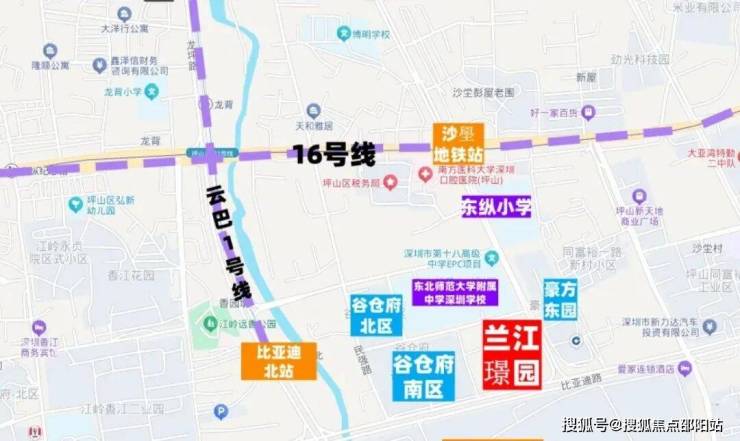 兰江璟园,位于深圳市坪山区石井街道比亚迪路豪方东园西侧,占据"深东中心"战略要地,是深圳"东进战略"的核心受益区域。项目紧邻坪山高新区,周边有比亚迪全球总部及六角大楼,形成"科技+教育"双轮驱动的区位格局。区域内已规划多条轨道交通线路,包括地铁16号线、云巴1号线、地铁14号线及未来19号线,构建了便捷的立体交通网络。