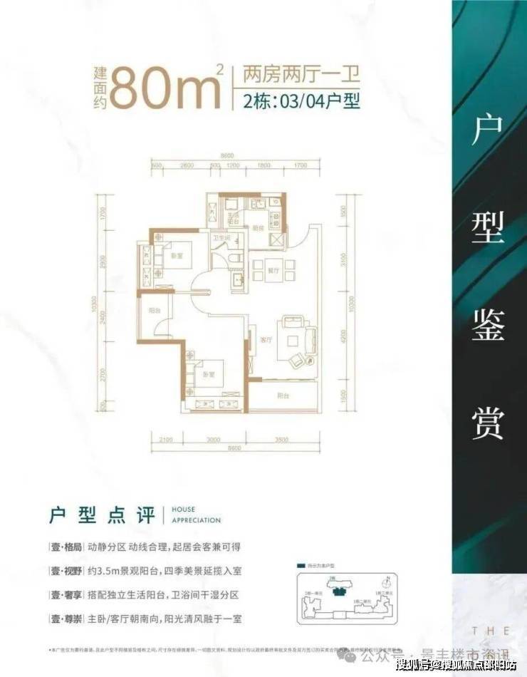 80㎡3房2厅1卫:客厅朝南带阳台,主卧朝南,次卧朝西。该户型分布在2栋03、04号房,空间布局合理,适合三口之家居住。