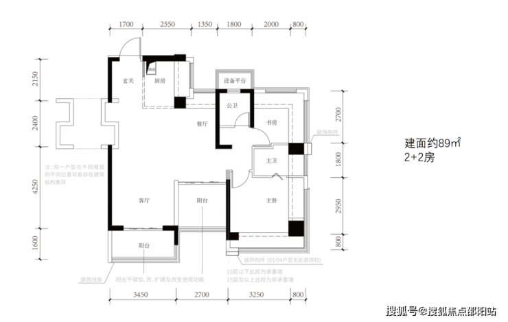 (1)建筑面积约89㎡户型