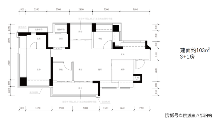 建筑面积约103㎡户型