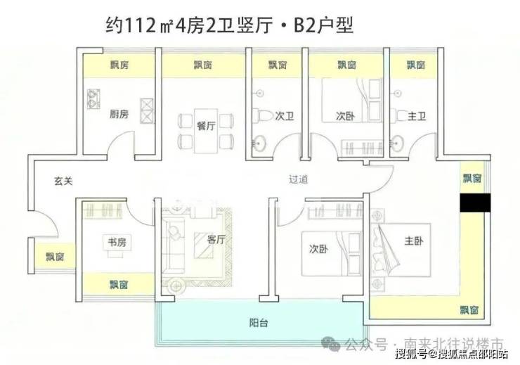 户型面积为105-188㎡纯四房,2梯4户,西南向无遮挡看海,西北向看高尔夫+碧海湾公园。