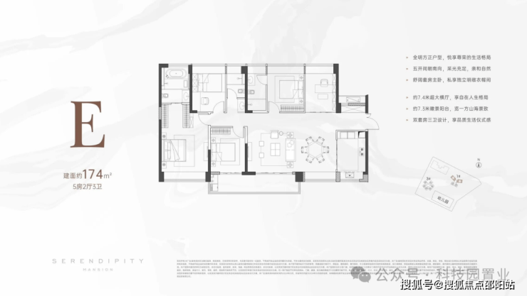 174㎡5房2厅3卫横厅(西区约10套),折后总价1350-1400万,单价7.75-8.04万/㎡