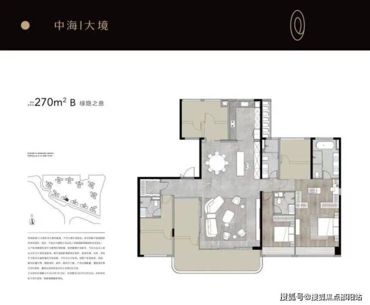 270㎡五房三卫为顶阶户型,南向面宽达 16 米,搭配 10 米 L 型转角阳台