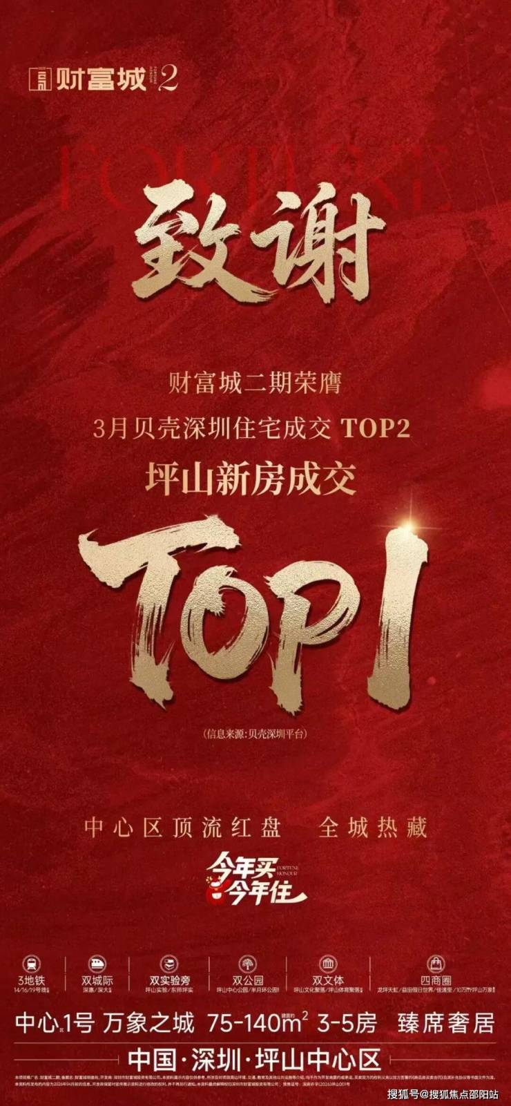 项目总建面约35.8 万㎡,分多期开发,绿化率35%,配社区商业与全龄园林。区位优势显著,500 米内达坪山区府、坪山中心公园、六馆一城(图书馆 / 大剧院等),生活配套成熟。教育资源突出,紧邻坪山实验学校(东 / 南 / 北三校区),九年一贯制名校,目送式上学。主力68-140㎡精装 2-5 房,户型方正通透、LDKB 格局、高得房率。折后均价约2.6-3.5 万 /㎡,68㎡两房 170 万起、75㎡三房 210 万起、105㎡四房 360 万起,2026 年 11 月精装交付。低总价、近地铁、名校旁,是坪山中心区刚需 / 刚改高性价比优选。