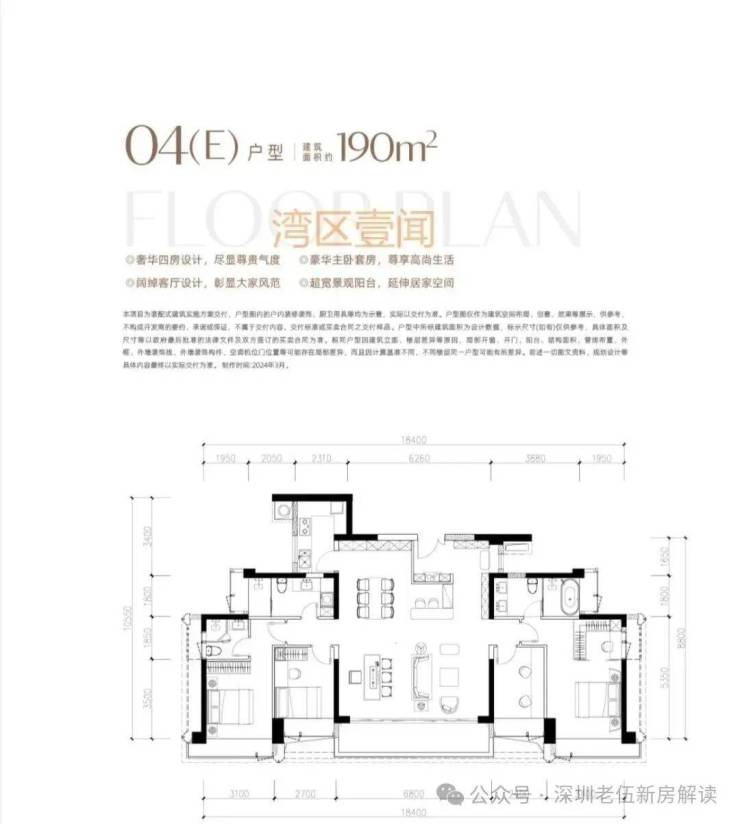 建面约190㎡宽幕湾居美宅,奢阔横厅设计,超广角阳台,纷呈世界万千精彩,轻奢主义双主卧套间,领衔湾居生活方式。