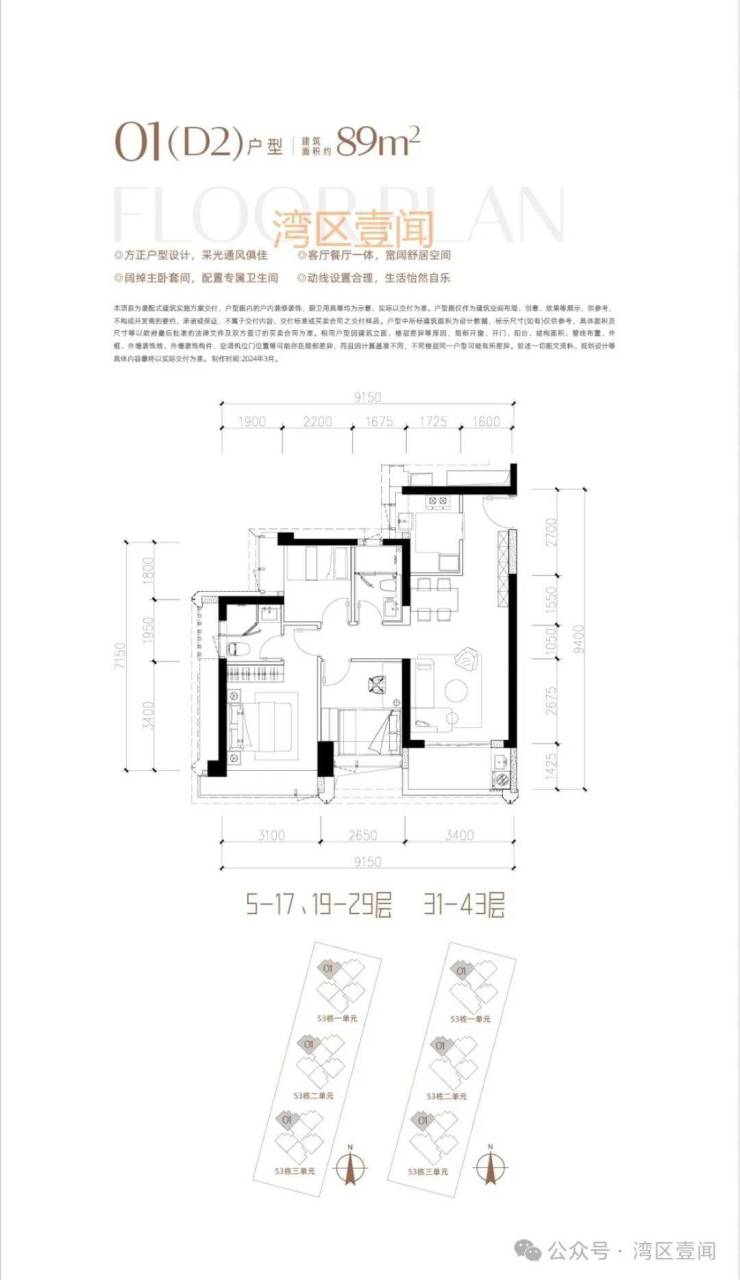 此次推售产品为53栋3单元 3梯5户/3梯4户 89/190㎡