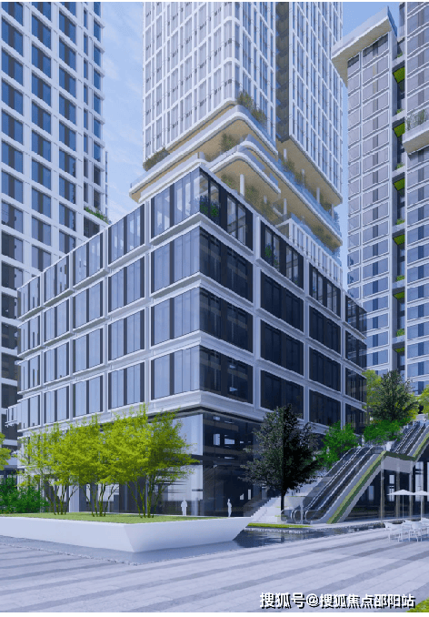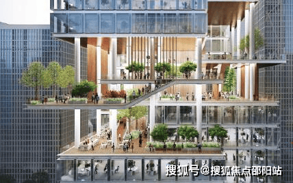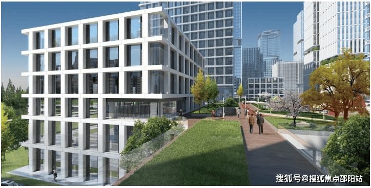 建筑组团中央,通高两层的“城市客厅”成为思想碰撞的熔炉;三层空中云台通过有盖廊道串联楼宇,形成全天候的公共步行纽带;而垂直分布的空中花园与地面绿脊,共同构建出覆盖率超30%的生态绿脉。