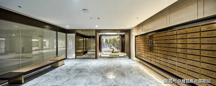 胤璞公寓的车库大堂也打造得大气豪华。车库大堂设置了沙发休息区,并在旁边打造日式枯山水景观,营造充满宁静禅意的意境,打造出归家的仪式感以及私密感,希望业主回到家的那一刻回归内心的宁静感与“慢下来”的生活方式。