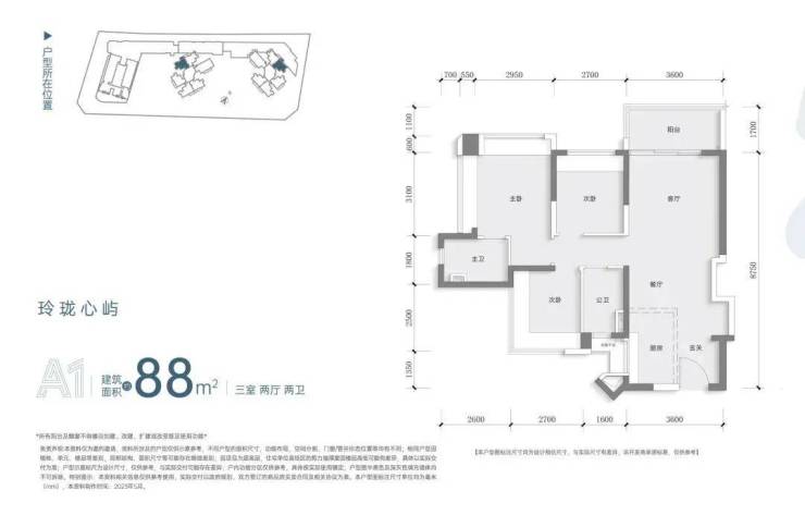 建面约88㎡三房两卫户型:打造约3.6m舒适宽厅;主卧套间双飘窗设计,次卧尺寸及方正度提升,两面凸窗满足2*1.2m床布置。建面约97㎡三房两卫户型:布局方正,约3.8米的客厅开间,100寸投影幕布的最佳观影距离,从细节处满足当代都市人对舒居生活的具体需求;约6.5m阔景阳台,拥有超大采光面。