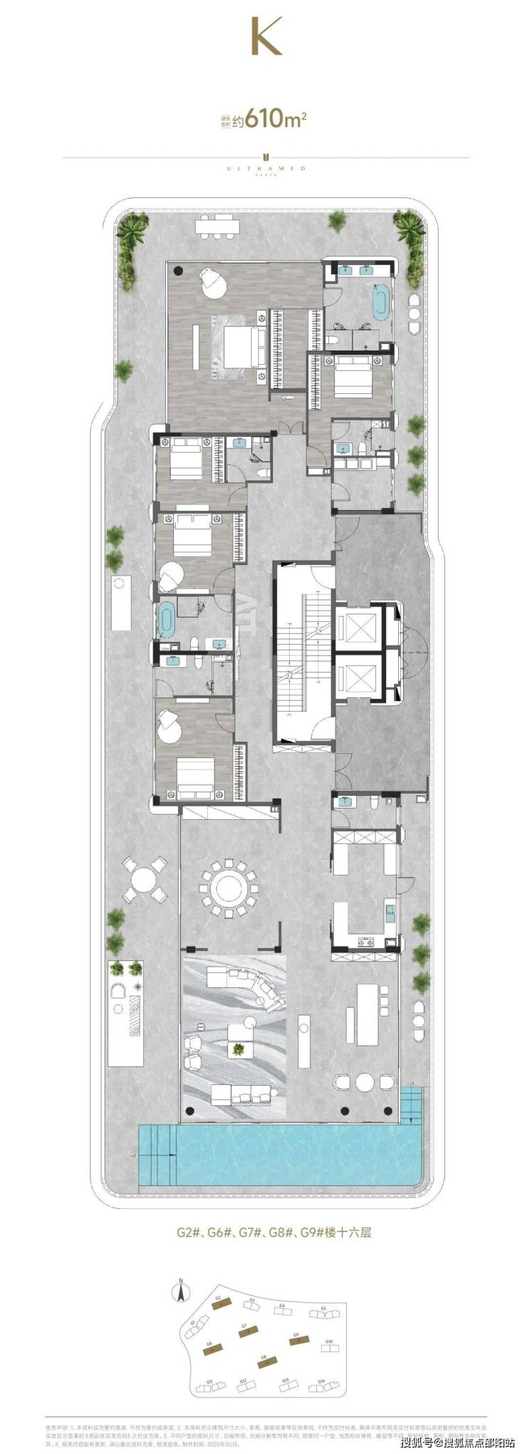 超级地中海・憘悦为了保持圈层的纯粹性,将最小户型定在 188㎡,这在常见的豪宅项目中,几乎是顶配的存在,可在这儿,也只能算是入门级。项目最大户型可达 610㎡,全盘仅有 5 套,配备天际泳池、环绕阳台,两梯一户,每一套都拥有绝佳视野,稀缺性拉满,是真正为少数人打造的顶级居所。