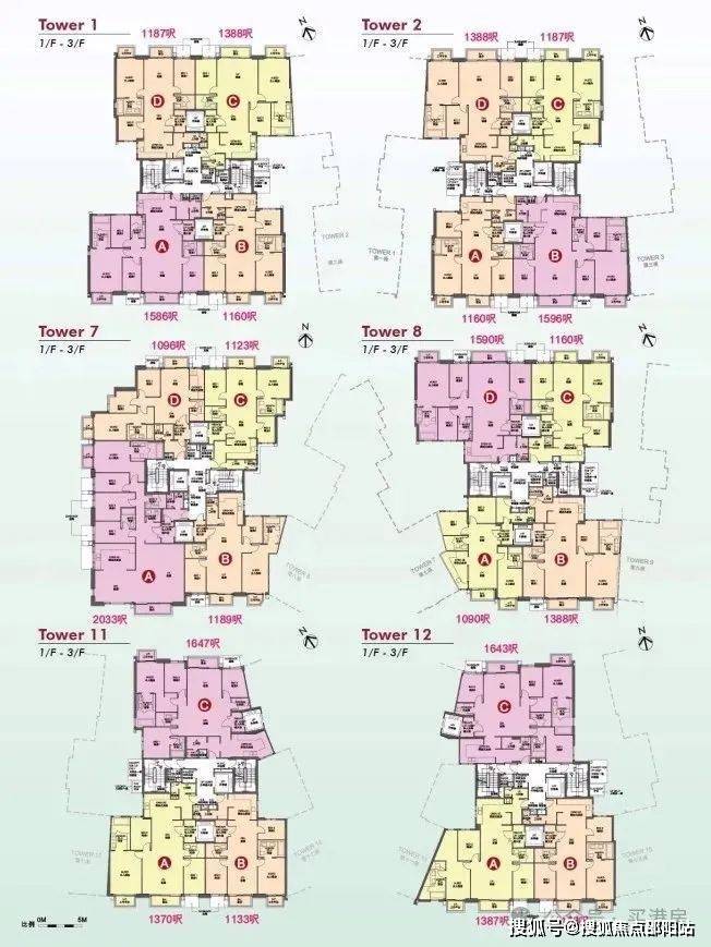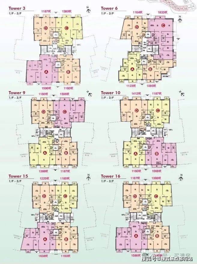 分层标准单位实用面积:分层标准户共有160个,包括3房1套共113户实用面积介乎1,078至1,412呎,4房2套共44户实用面积介乎1,503呎至2,141呎,4房3套共3户实用面积为2,526呎