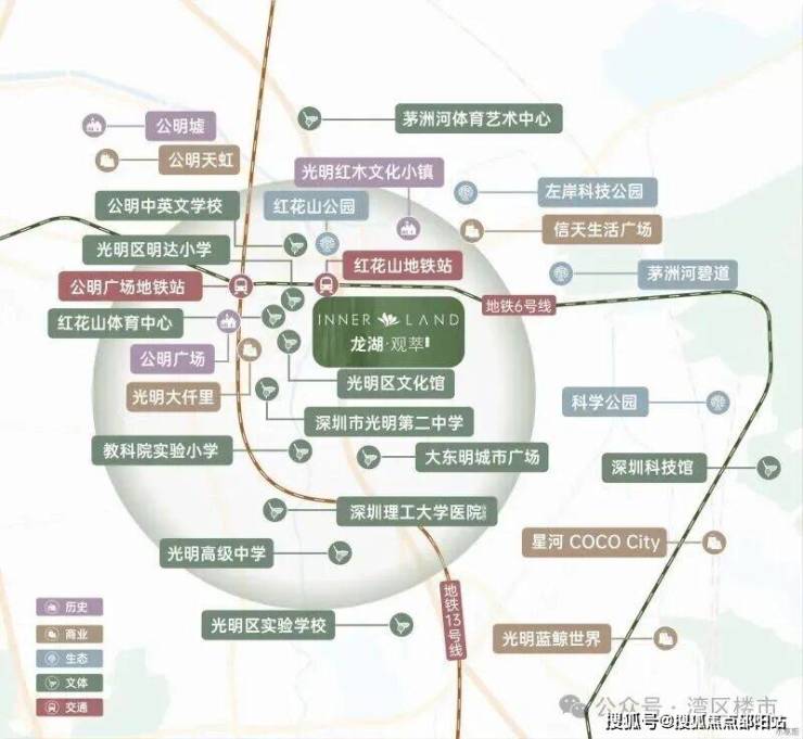 并汇聚深圳市光明区实验学校、光明区高级中学、深圳市教育科学研究院实验小学(光明)等重点学校,形成全龄段优质教育圈与高浓度文体资源带。