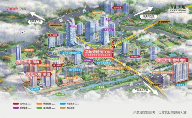 项目附近有花地湾TOD枢纽,1号线、25号线交汇换乘