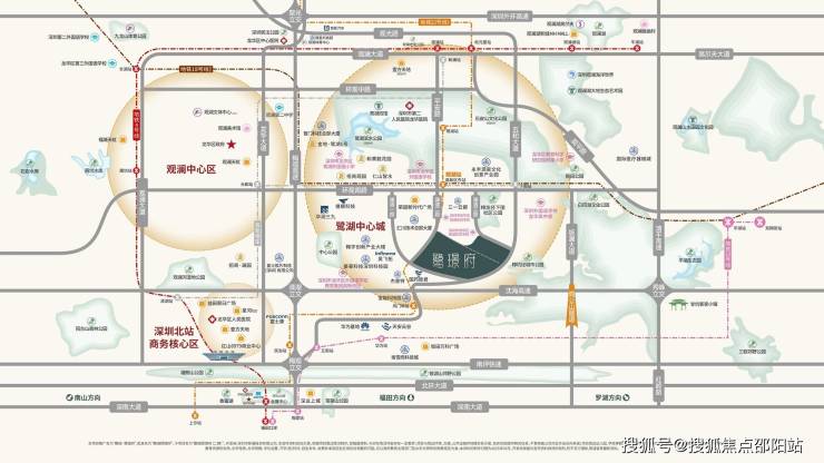 交通体系:项目毗邻规划中的地铁18号线与22号线观湖站(约500-600米),无缝接驳龙华有轨电车2号线;依托五和大道、环观南路、梅观高速等城市干道,约40分钟直达福田中心;远期更规划深广中轴城际线与“北站+鹭湖”双枢纽,畅联湾区生活圈。