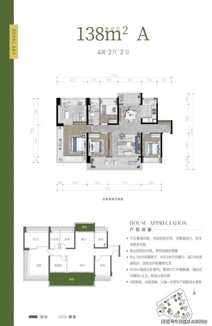户型亮点:约 38 ㎡星级主卧套间,奢享 270°环幕飘窗、酒店式衣帽间+主卫