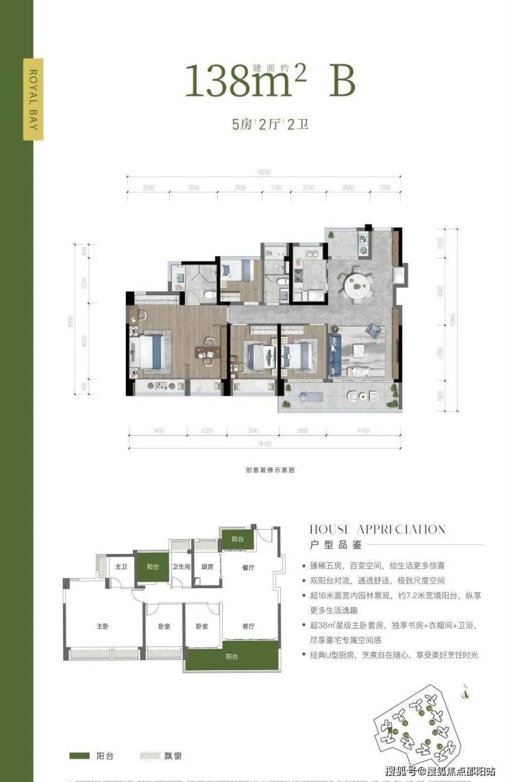 户型亮点:超16米面宽内园林景观,约 7.2 米宽境阳台