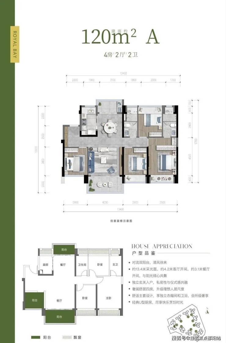 户型亮点:奢阔舒居四房,舒适主套设计,享独立衣帽间和卫浴