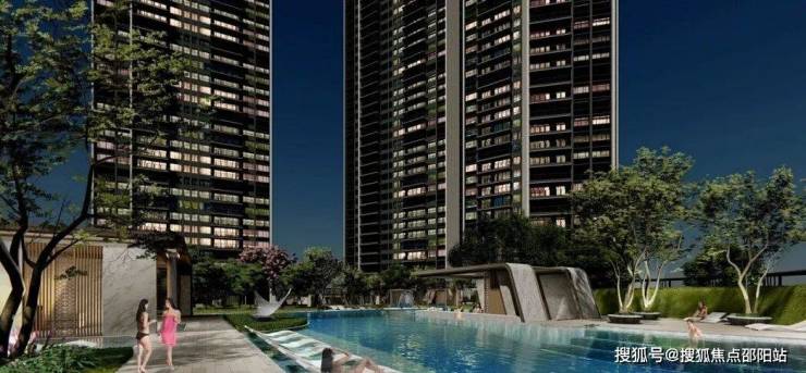 中央园林打造度假风泳池、叠水水景、下沉水吧及水中酒吧、儿童趣味设施等,打造度假生活体验