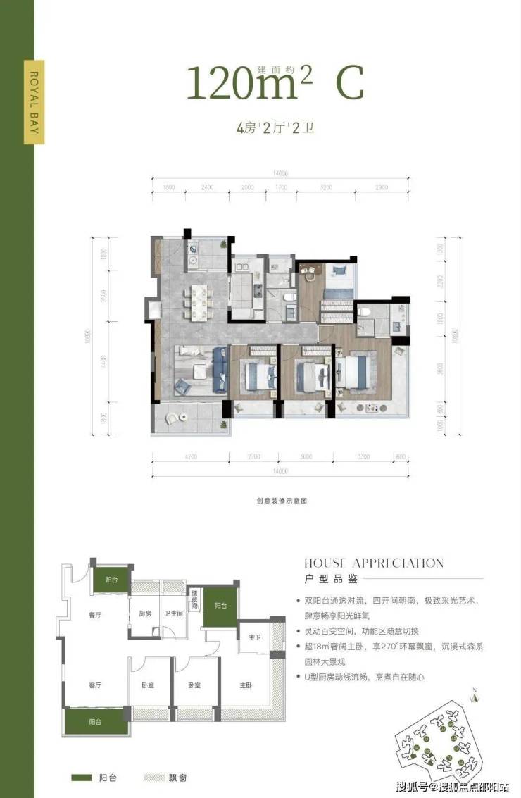 户型亮点:约 14.3 米南向面宽,灵动百变空间,给生活更多可能