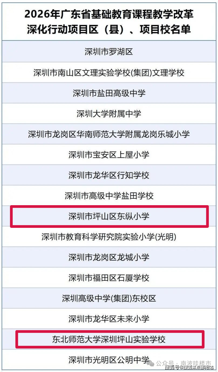 近日,2026年广东省基础教育课程教学改革深化行动项目校名单公示,坪山教育迎来高光时刻!其中东北师范大学深圳坪山实验学校入选省级课改项目校,成为坪山基础教育发展标杆。