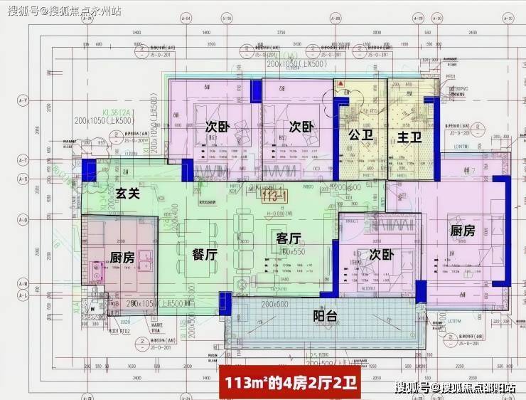 113㎡的4房2厅2卫,设计的是横厅南北通透格局,独门独户,进门入户玄关,客餐厅6.2米开间,LDKB一体化