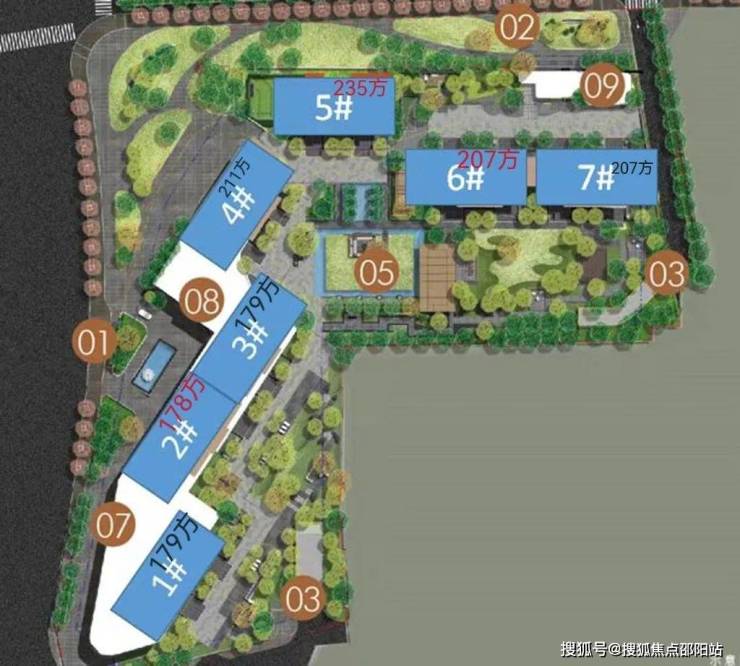 楼盘一共由7栋楼组成。全部都是一梯一户的纯板式楼体,南北对流,私密性极好。