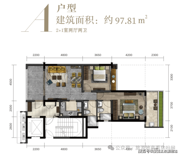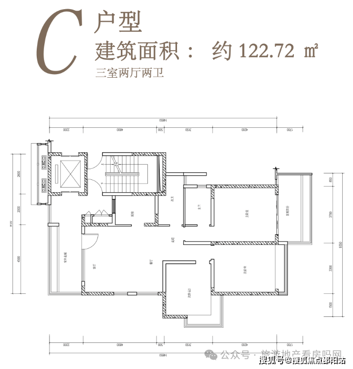 3#平层图:主力户型为80㎡两房、97㎡两房、110㎡三房、122㎡大三房