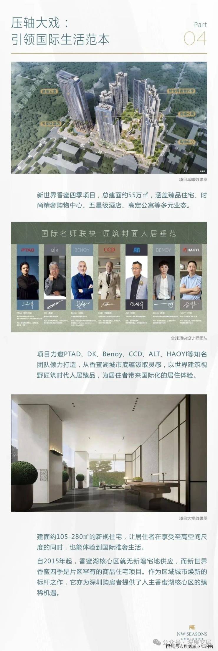 项目作为集住宅、公寓、商业、酒店为主的大型综合体,分为两个地块开发,一块为新世界香蜜国际公寓,一块即新世界香蜜四季家园。
