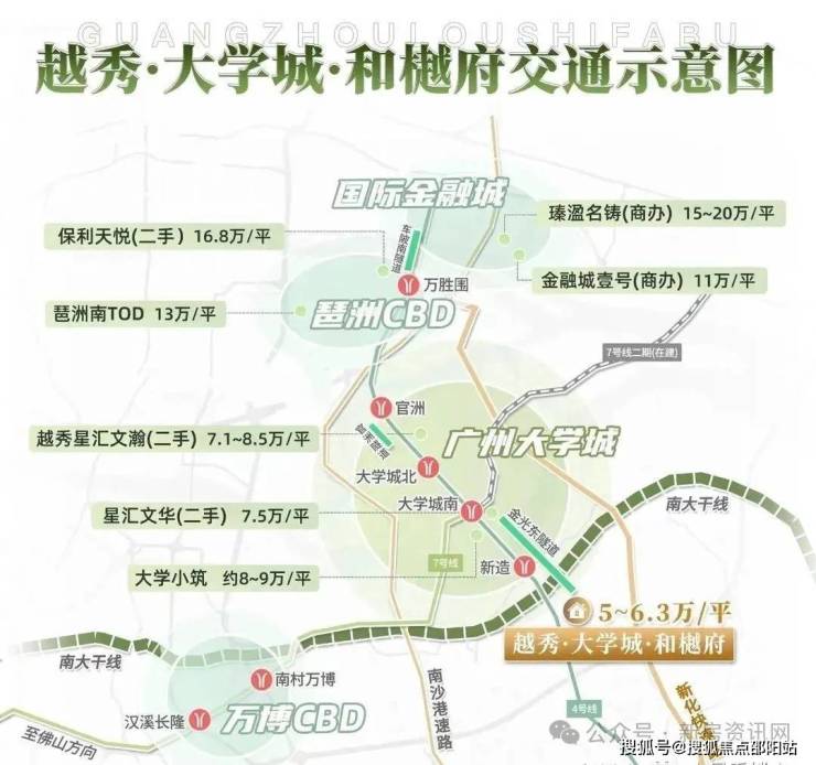 地铁——4号线新造站几百米位置,快速接驳地铁5/7/8号线,实现4站万博/琶洲,5站金融城;