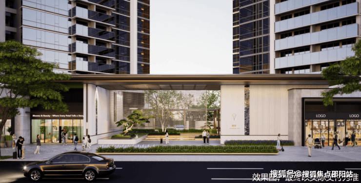 立面采用高端蜂窝铝板+天然石材+类玻璃幕墙,精致的金属勾边,毫米级幕墙工艺锻造,以“公建化立面”诠释高阶人居美学。