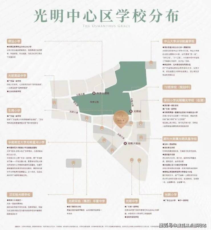 深圳小学光明曙光学校,总规模为36班小学,深圳小学光明学校中心校区,为36班初中,提供学位1800个,原址计划在2025年7月投入使用,目前在深小曙光学校借址办学;另外深圳小学狮山小学(暂命名)在后期也将投入使用,目前正在建设中,总规模为36班小学,可以提供学位1620个。