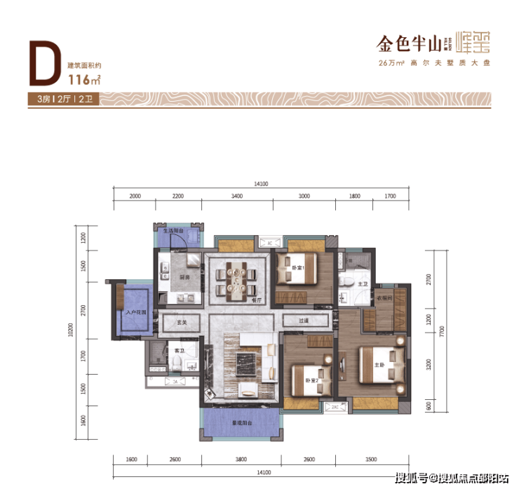 【稀缺台地大洋房】项目依山而建,打造2梯4户,96-141平3房至4房。