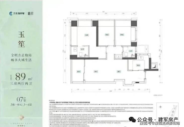 【户型品鉴】89-103㎡3-4房💎约89㎡3房2厅2卫史上入驻海岸城!!最低门槛户型!!💎户型亮点:• 玄关“S”墙设计,满足冰箱和入户收纳柜• 进深约1.75m大阳台,轻松打造私家小花园• U型厨房设计,洗切炒动线合理布局• 主卧衣帽间+双面飘窗,小户型大享受