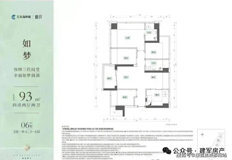 这次最大亮点就是3栋一单元93平的王炸户型,作为本次最高使用率的稀缺产品,做到极致四房,使用率约104%,在当下深圳的新房市场极为少见。