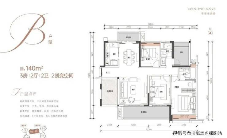 2栋1梯:103/128/140m户型;2栋2梯为两梯三户设计,有约140/172m户型,共计127套房源。(精装)