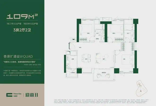 【约109平三房两厅两卫户型】