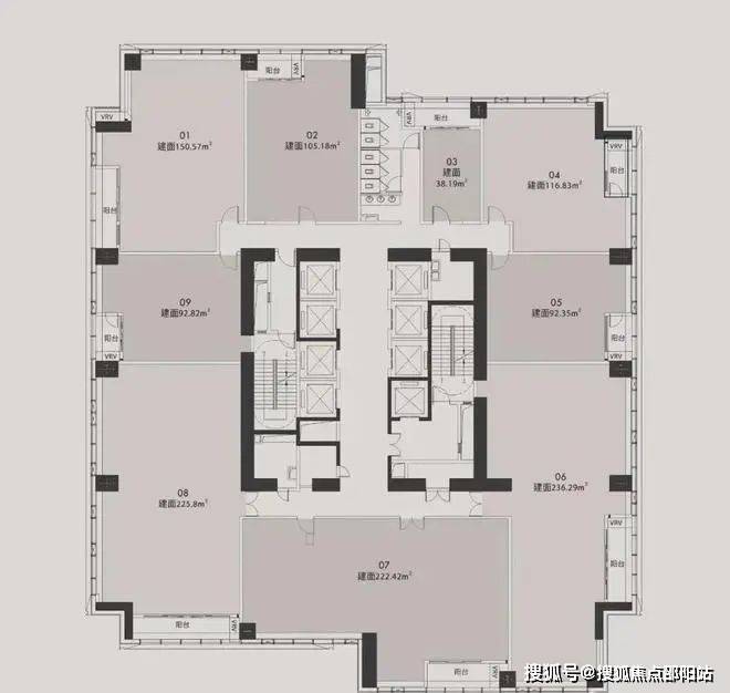 户型面积:建面93/103/116/150/223/235㎡(三至四房)