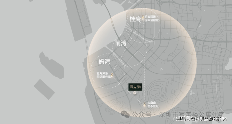 🔘大南山生态住区项目所在前海合作区大、小南山片区西组团规划定位重点安排教育、配套、体育等公共服务设施和生活服务设施(数据来源:《中国(广东)自由贸易试验区深圳前海蛇口片区及大小南山周边地区综合规划》与【桂湾】国际金融城和【妈湾】深港国际服务城两大前海核心区引擎形成前海黄金三角,工作、生意生活尽在掌握