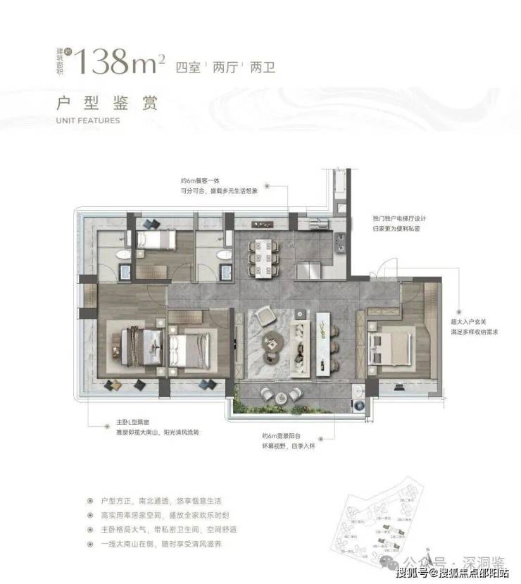 【建面138㎡4居】4室2厅2卫, 2梯2户,楼高17层,板楼,南北通透