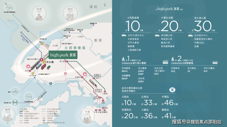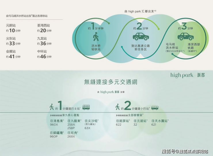 位于元朗洪水桥核心,步行 1-4 分钟可达洪水桥轻铁站及巴士总站,多条线路覆盖港九新界。未来屯马线洪水桥站(拟建)及港深西部铁路开通后,30 分钟达西九龙、45 分钟抵中环,10 分钟直达深圳前海。驾车 2 分钟上高速,无缝衔接机场、深圳湾等口岸,跨境与跨区通勤高效。