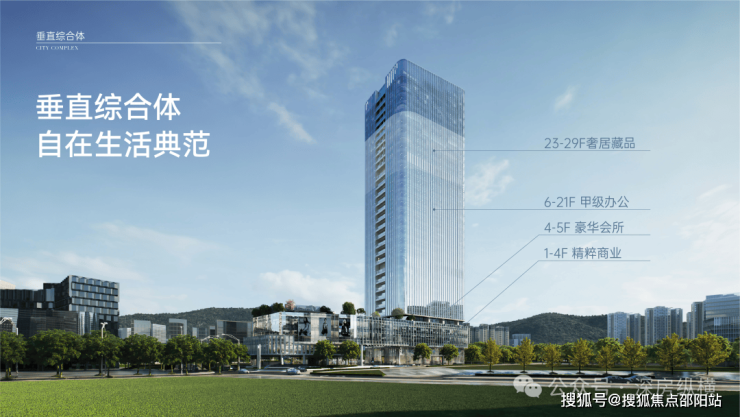 集合云端居住、奢雅会所、精粹商业、甲级办公为一体的垂直综合体,生活&休闲、社交&事业,悦然相逢,自在切换。