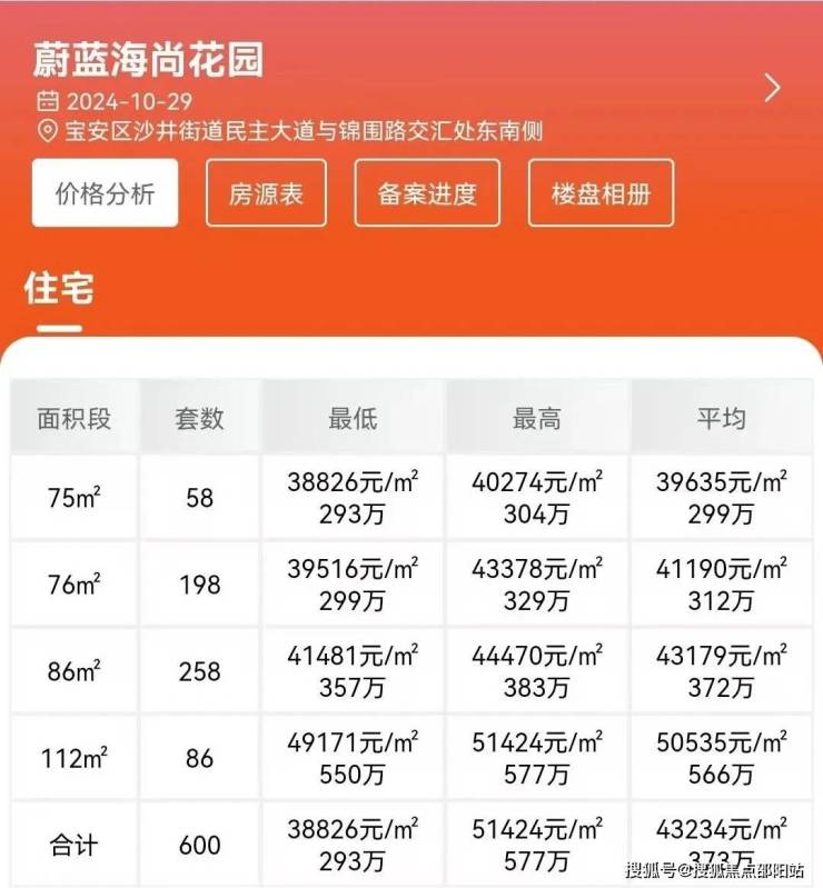 宝安沙井,卓越前海未来城(备案名:蔚蓝海尚花园)于2024年10月29日取证入市!本次首推2栋1/2单元,共600套房源,面积有76㎡的3房2厅1卫,86㎡的3房2厅2卫,113㎡的4房2厅2卫户型,其中113平的实际可以做5房,备案均价4.55万/㎡,备案单价3.88-5.14万/㎡,总价293-576万/套!计划在2026年12月底前带精装交房。