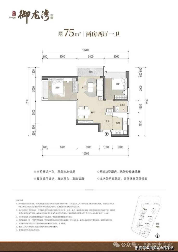设计的是竖厅稀缺的双龙抱珠格局,客厅开间3.4米,U型厨房,卫生间三段式分离设计,得房率约73.26%(不含赠送),东南或西北朝向,加上赠送得房率约80%。户型